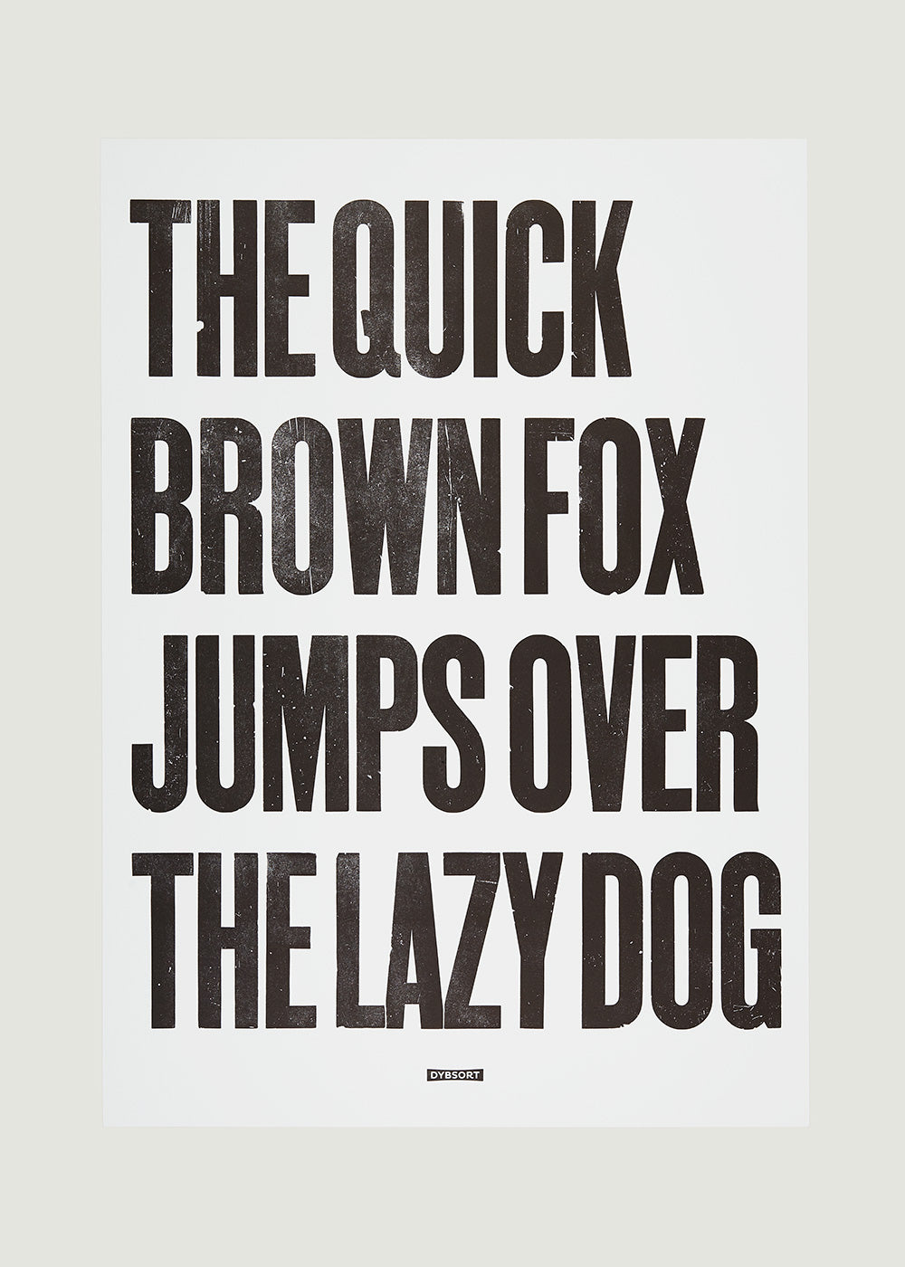 Alle bogstaver i det engelske alfabet samlet i denne over 125 år gamle sætning. Disse plakater er håndsat og håndtrykt med meget gamle og naturligt slidte trætyper. Det rå look er derfor ikke fremstillet, men ganske autentisk. Plakaten er trykt på hvid somerset-papir fra England - 100% bomuld og i en kvalitet fra øverste hylde.